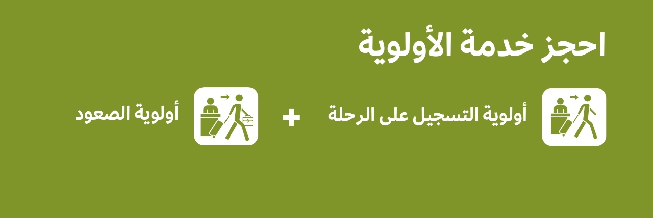 -تنطبق خدمة الأولوية فقط على إنهاء إجراءات السفر بشكل أولوية والصعود إلى الطائرة بشكل أولوية.