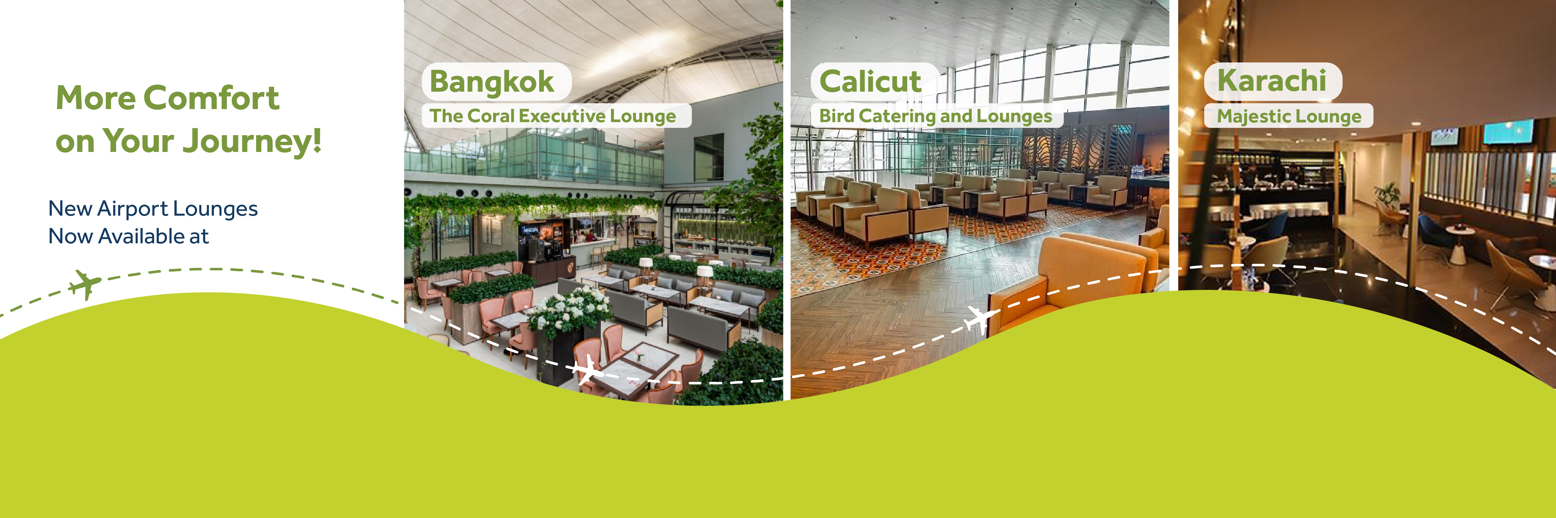 - Maximum stay 3 hours (180 minutes) per passenger for Bird Catering and Lounges at CCJ Kozhikode International Airport.